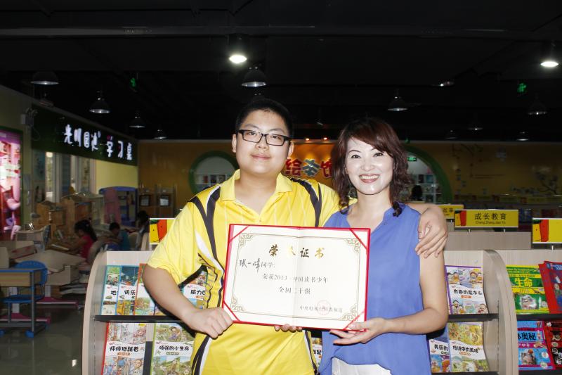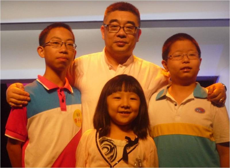 2012年读书少年李子安(左一)与钱文忠教授及同学合影